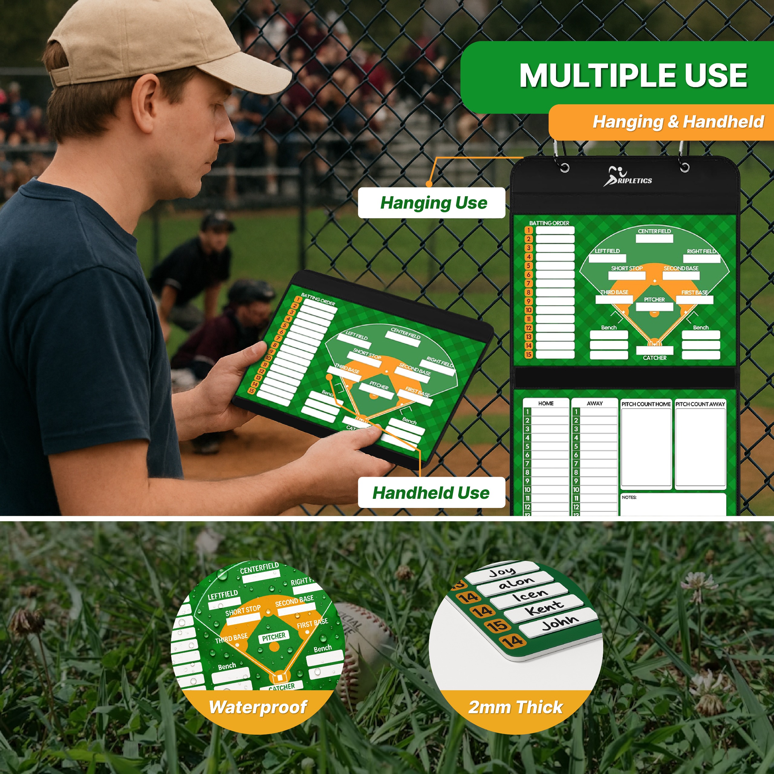 - Multiple Usage Options: Considering the complex and ever-changing conditions on the baseball field, our softball & baseball lineup board for dugout is designed to adapt to various situations. You can hang it on a fence using the hooks for easy player access to strategies or use it handheld.
