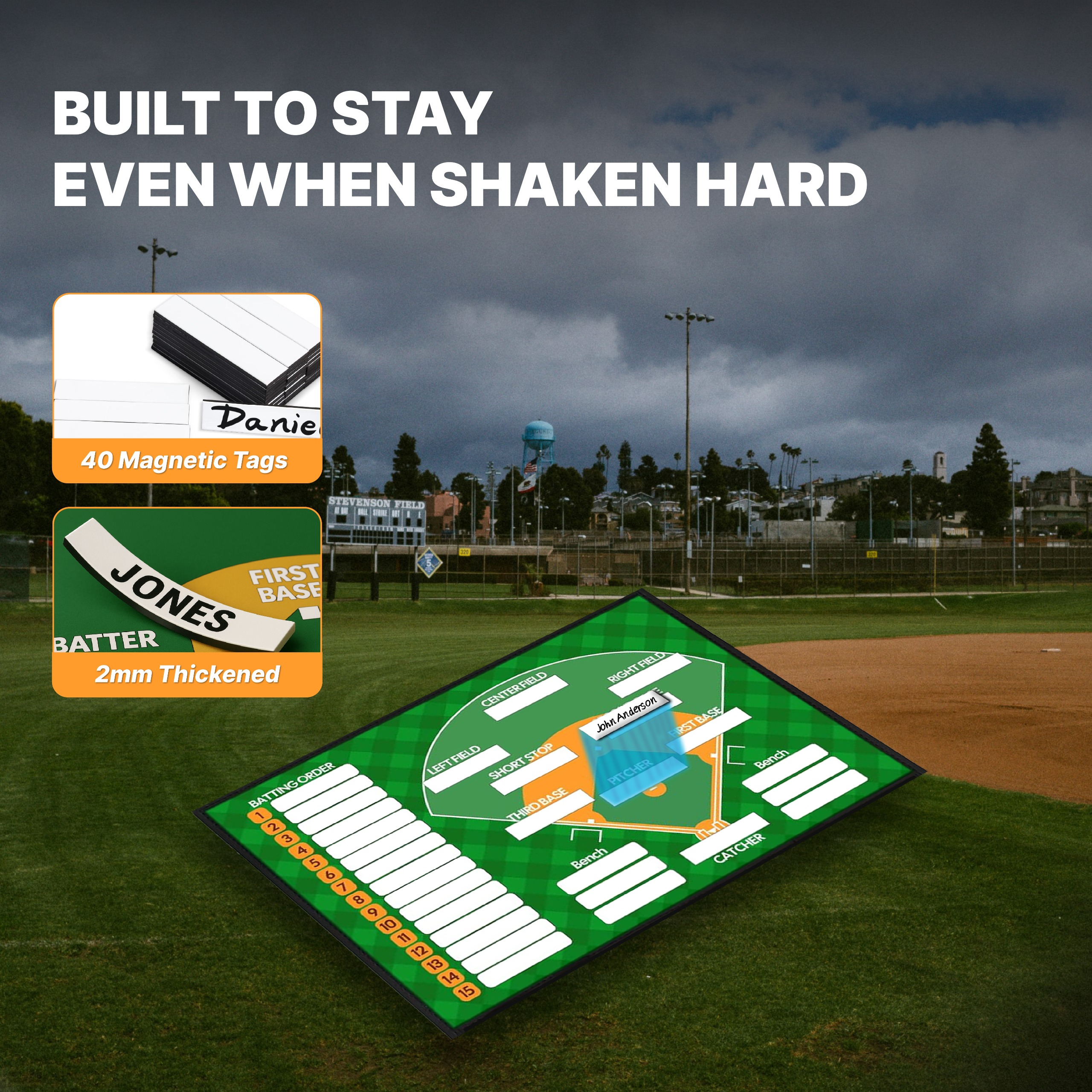 - Strong practicability: The baseball clipboard for coaches is ideal for games, daily practices, and training sessions. It’s a must-have strategy board for every coach. With 40 strong magnetic blank name tags and our carefully selected premium markers, you can easily write players’ names for tactical planning and training.
